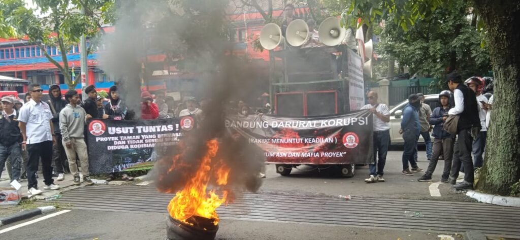 BANDUNG -kilasjabar.com-Aliansi Pemuda Anti Korupsi (APAK) melakukan aksi unjuk rasa di depan Gedung DPRD Kota Bandung, Rabu (4/2/2026), menuntut transparansi dan penyelesaian kasus-kasus dugaan korupsi di beberapa instansi, termasuk Dishub, Perumda, dan DPKP.